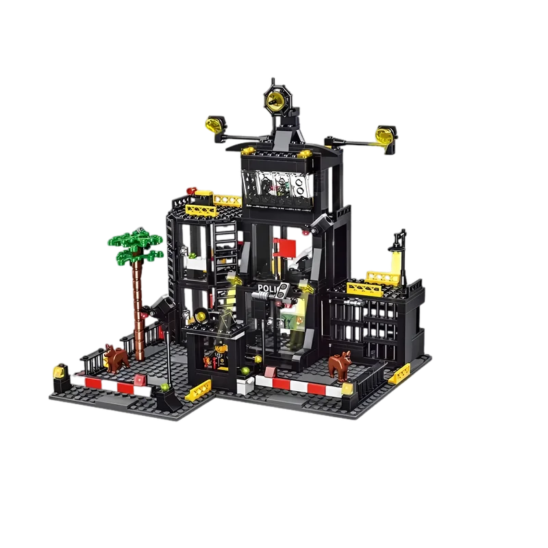 Interactive Play Features: Features an opening jail cell, hinged barriers, and rotating searchlights for dynamic play.