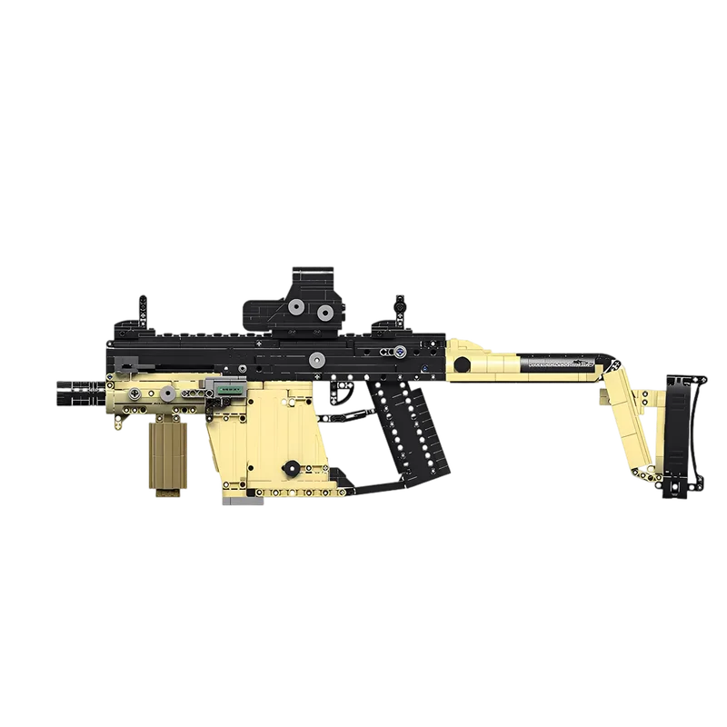 Submachine Gun Replica: Build a 1:8 scale “Short Sword” SMG with 1558 pieces. Measures 62.9 × 23.5 × 6.7 cm.