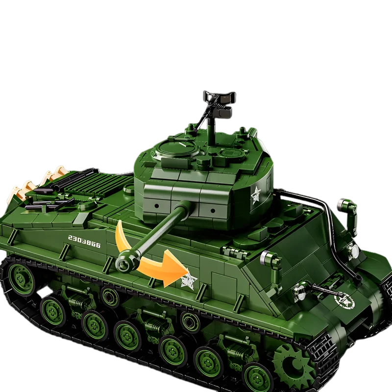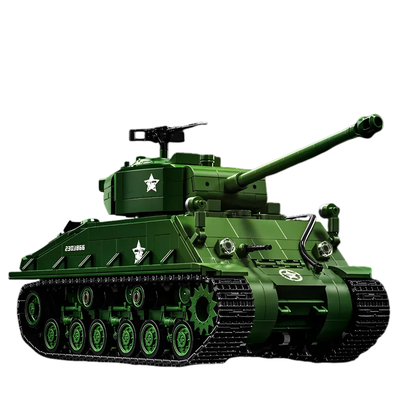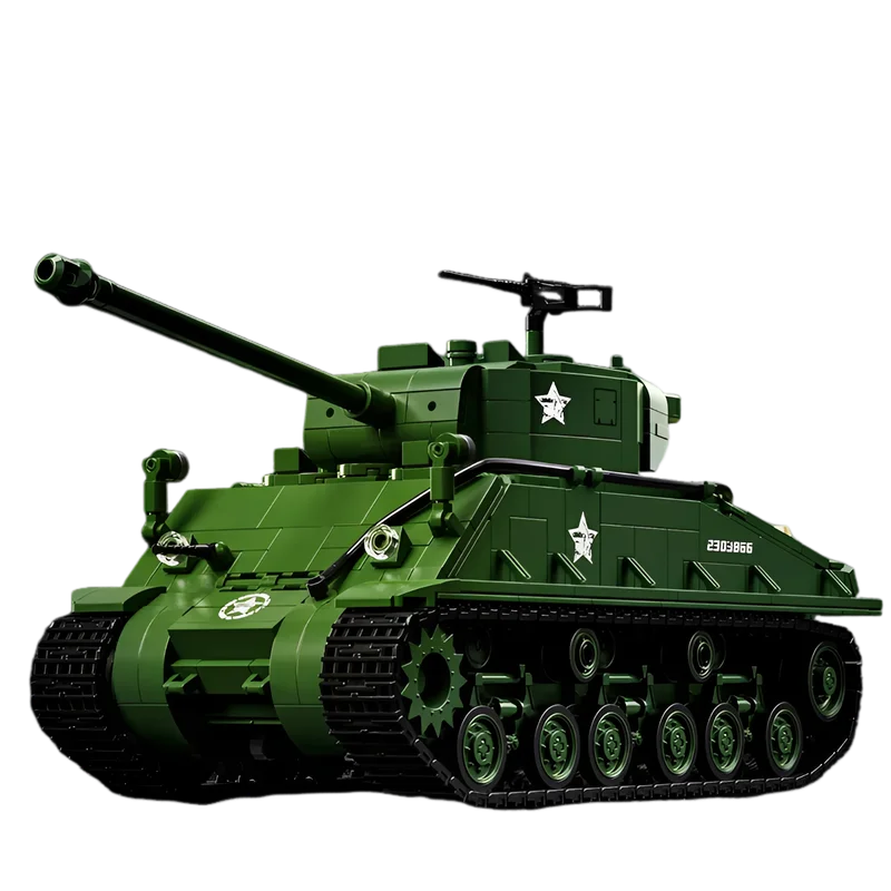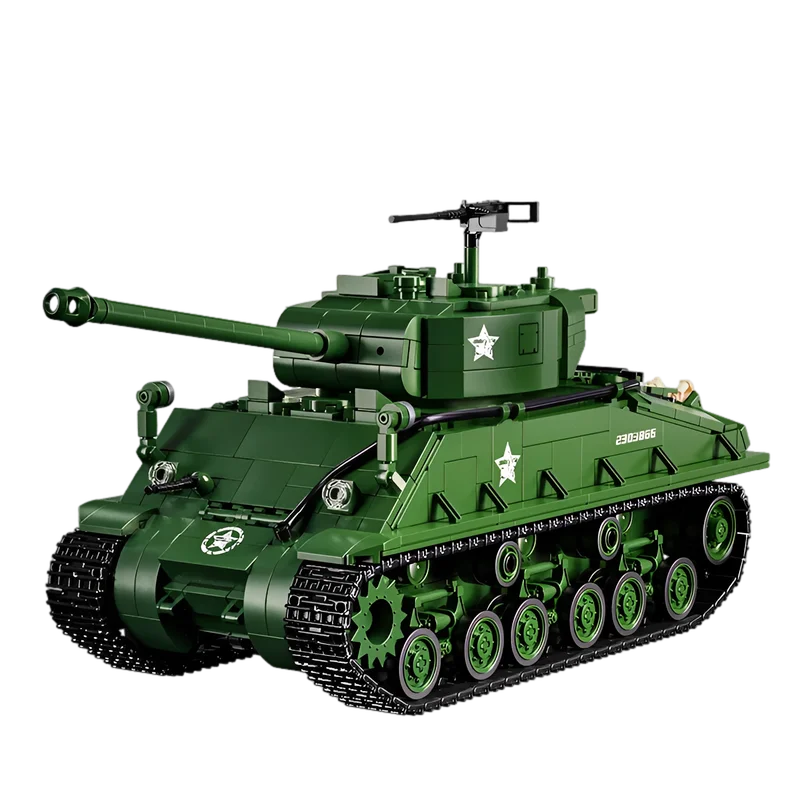 Sherman Tank Replica: Build a detailed M4 Sherman Medium Tank model from over 1682 pieces.