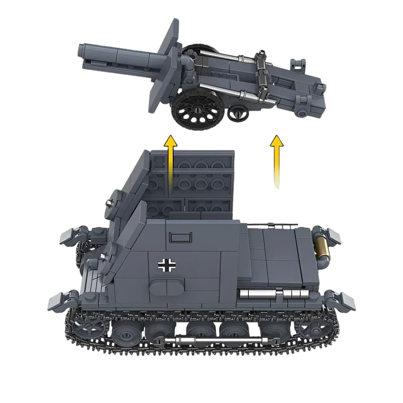 WWII Artillery Model: A 1:35 scale replica of the Sturmpanzer I Bison. Measures 145mm x 66mm x 83mm.