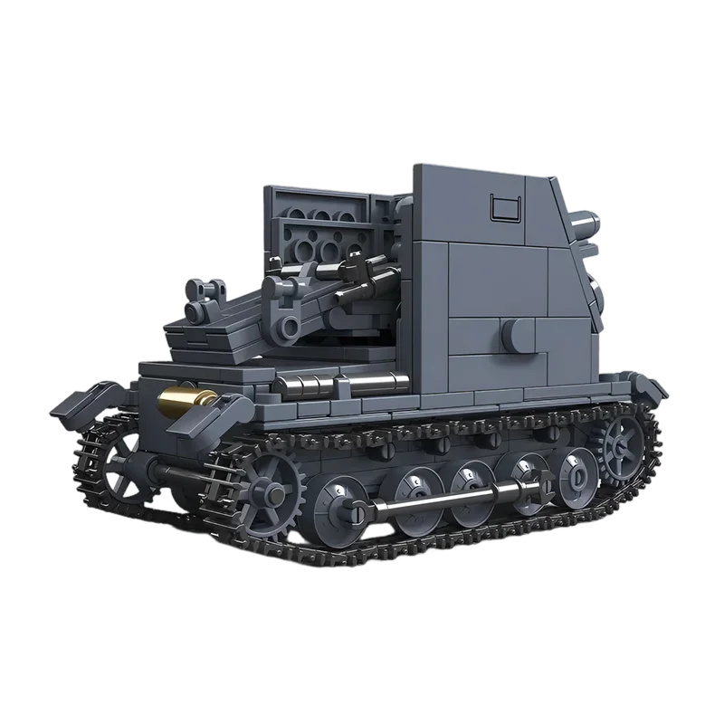 The Sturmpanzer I Bison was a German self-propelled gun developed during World War II. Its creation was a response to the invasion of Poland, where towed heavy infantry guns struggled to keep pace with advancing tanks. The vehicle was a simple conversion, created by mounting a complete 15 cm sIG 33 gun, including its carriage and wheels, onto a turretless Panzer I tank chassis. A tall, open-topped fighting compartment made of thin armor was built around the gun, offering only minimal protection to the gunner and leaving the loaders completely exposed. The design had severe drawbacks, including an overloaded chassis prone to breakdowns, an extremely tall profile, and a complete lack of onboard ammunition storage.